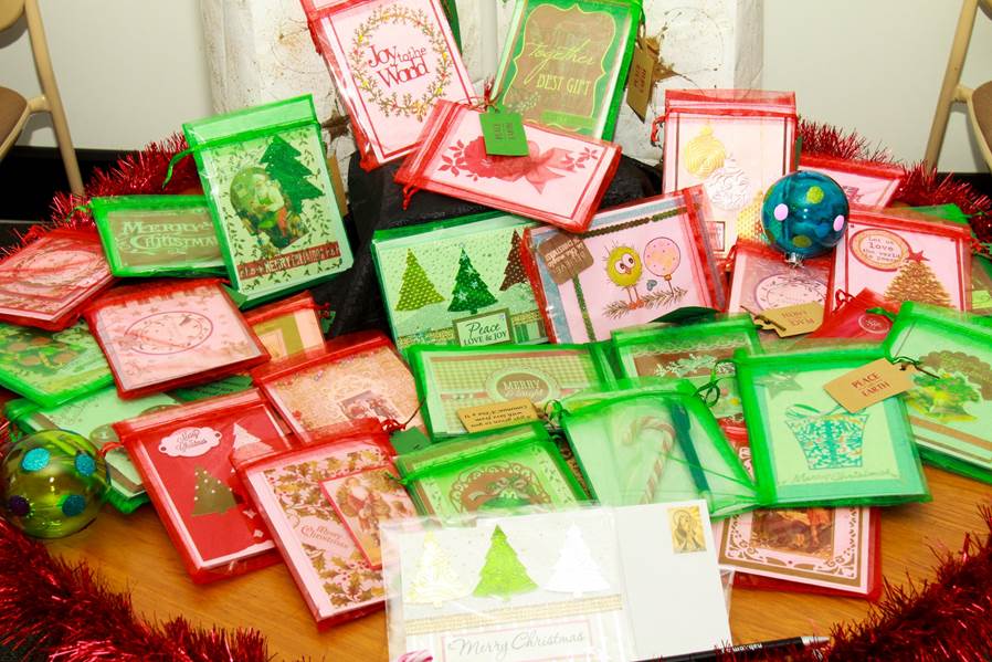 A huge thank you goes to these amazing ladies whom have given so generously in both time and product these last few months to create a gift charity drive for Rosie’s. The ladies made beautiful handmade cards and put them in organza bags along with a stamped envelope, pen (donated by NAB) and a candy cane; for the Rosie volunteers to hand out from their Food Vans this Christmas season on the Gold Coast. The Gift Card Packs were presented to the beautiful Marleen from Rosie’s at our end of year function.
